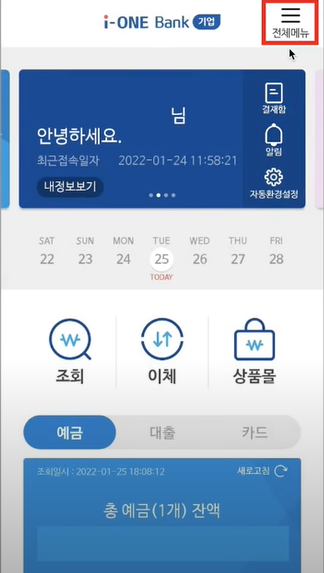 예시 은행 어플은 기업은행 입니다.